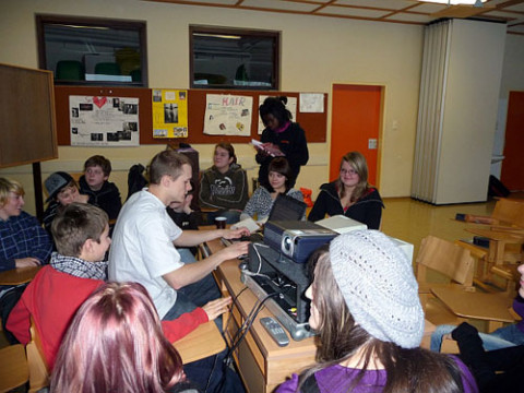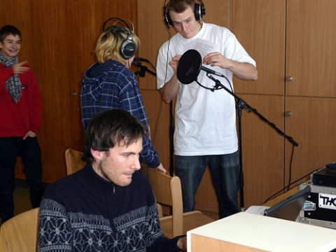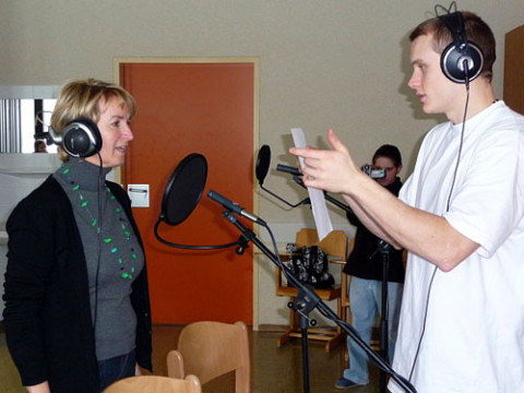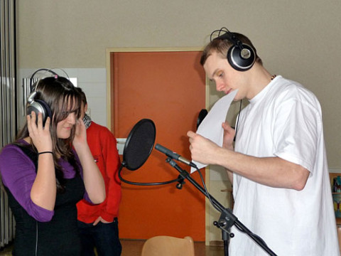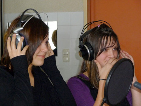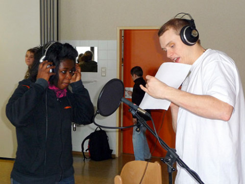 Im nächsten Schritt wurden die SchülerInnen der Klassen unter fachmännischer Anleitung dazu angehalten einen eigenen Text zu schreiben, der danach mithilfe eines portablen Aufnahmegerätes (Monitorboxen, Laptop, externe Soundkarte usw.) aufgenommen und abgemischt wurde.